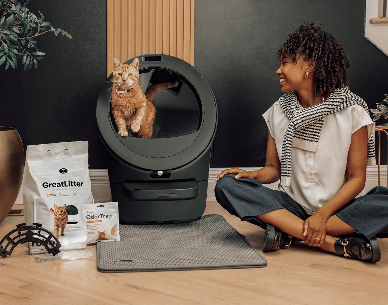 Stop scooping with the Litter-Robot 5 self-cleaning litter box and a selection of premium accessories, including all-natural clumping cat litter, OdorTrap® for powerful odor control, and the LitterTrap® Mat for superior cleanliness. Plus, rest easy with the WhiskerCare® 3-Year Extended Warranty, covering your Litter-Robot from top to bottom.