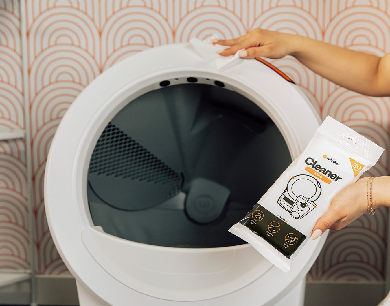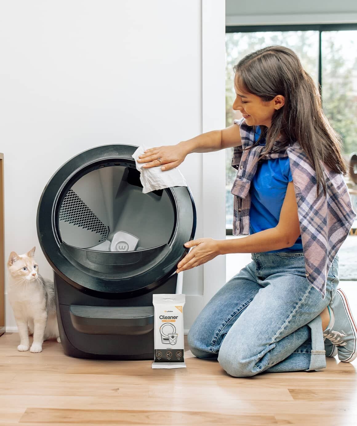 Our all-natural Cleaner Wipes eliminate stains, odors, and organic material using bio-enzymatic technology so you can clean your Litter-Robot, Feeder-Robot, or litter box with ease.