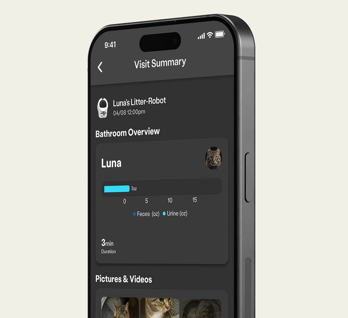 Using visual identification through camera-enabled Whisker devices, we link each of your individual cats to device activities for more accurate tracking and precise insights. This feature is only available for camera-enabled devices like Litter-Robot 5 Pro.